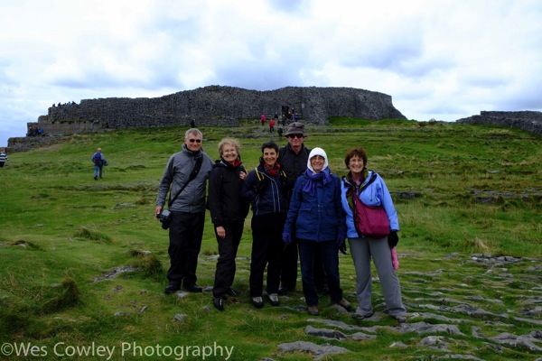 Doug (recovered from vertigo from hanging over the edge), Kathy, Chris, John, Mother Mary Lou and Gina. Â This was a typical Irish day, alternating between misting and sunshine. Â Mostly misting while we were on Inishmore.