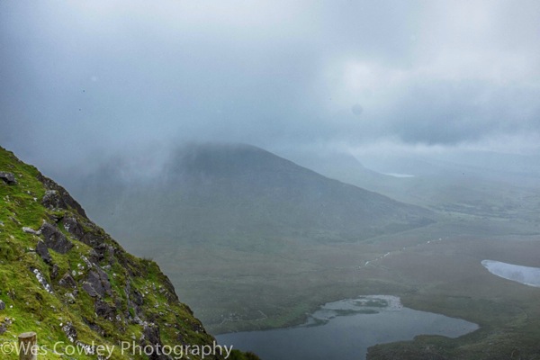Totally enchanted, we left the pretty park, and took a foggy ride over Connor Hill to Dingle for our over night stay, in fact our only two night stay of the trip. Â View from Connor Hill.