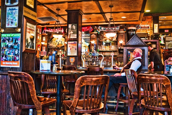 Old Triangle Pub lower bar, Mike the bartender enjoying a libation
