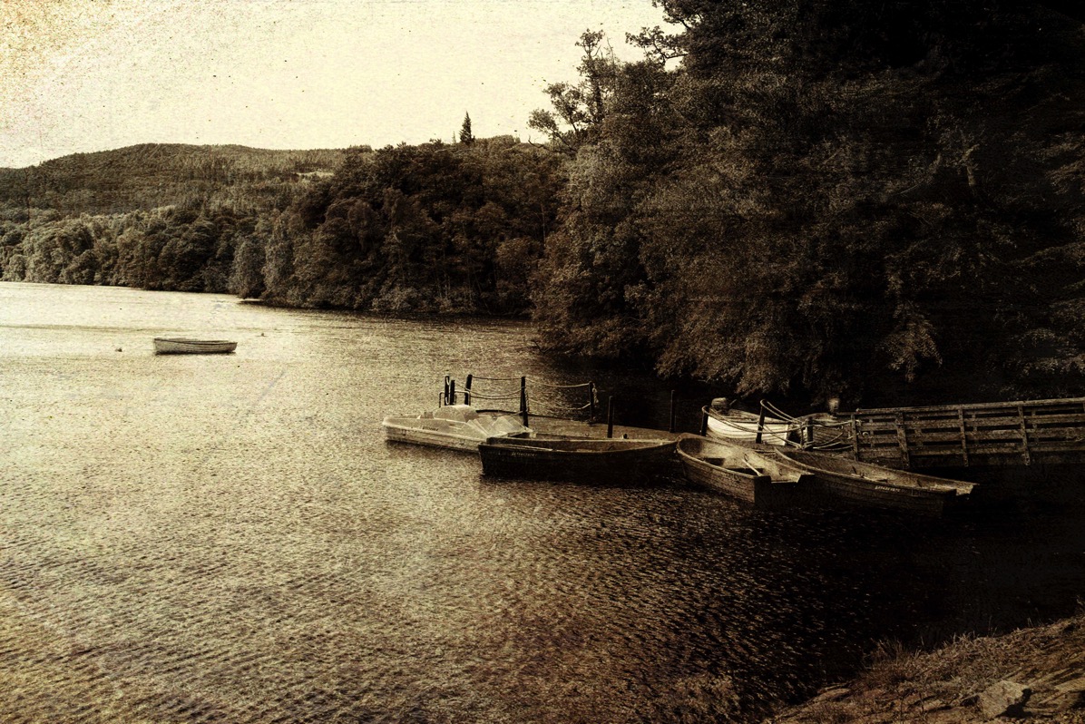 Boats on Loch Tummel, a loch formed by dam across the River Tummel at the location of our hotel.