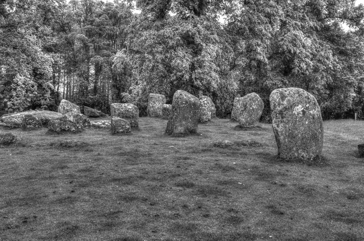 At Balnuaran of Clava itself there is a group of three Bronze Age cairns which lie close together in a line running north east to south west. The tombs at either end are of the passage grave sub-type. The central cairn is of the ring cairn sub-type, and uniquely has stone paths or causeways forming “rays” radiating out from the platform round the kerbs to three of the standing stones. The cairns incorporate cup and ring mark stones, carved before they were built into the structures. The kerb stones are graded in size and selected for colour, so that the stones are larger and redder to the south west, and smaller and whiter to the north east. All these elements seem to have been constructed as one operation and indicate a complex design rather than ad hocadditions. https://en.wikipedia.org/wiki/Clava_cairn http://www.stonepages.com/scotland/clava.html